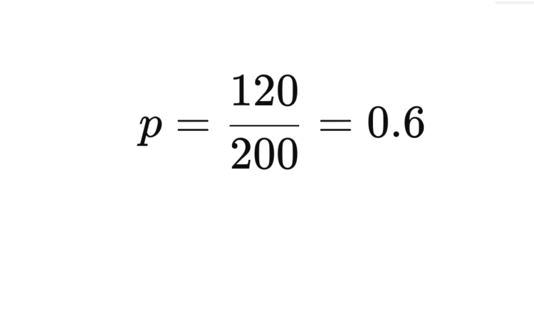 Example: If 120 out of 200 people say “yes”, p=120200=0.6p = \frac{120}{200} = 0.6